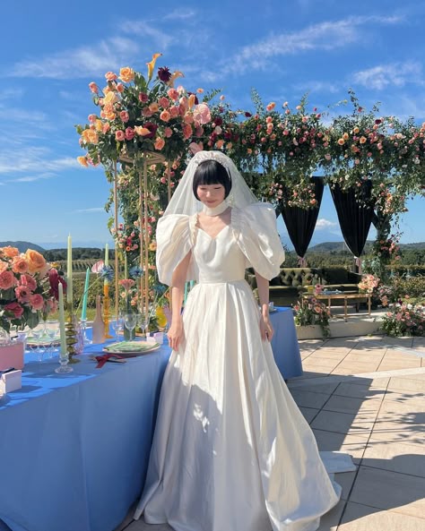 あさぎーにょ asaginyo on Instagram:"ロマンチックポップなティーパーティーウェディング👰💍🩵みんなにも楽しんでもらえるといいな! YouTubeに全貌を公開したので動画を通してぜひ出席してね🕊️ wedding produce @hautecouturedesign_ movie d2025結婚式。