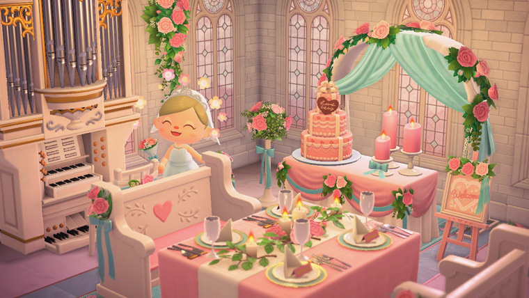 あつまれ どうぶつの森』ウエディング撮影はふざけても許される? あえて怒られるようなデザインにしてみたインサイド。