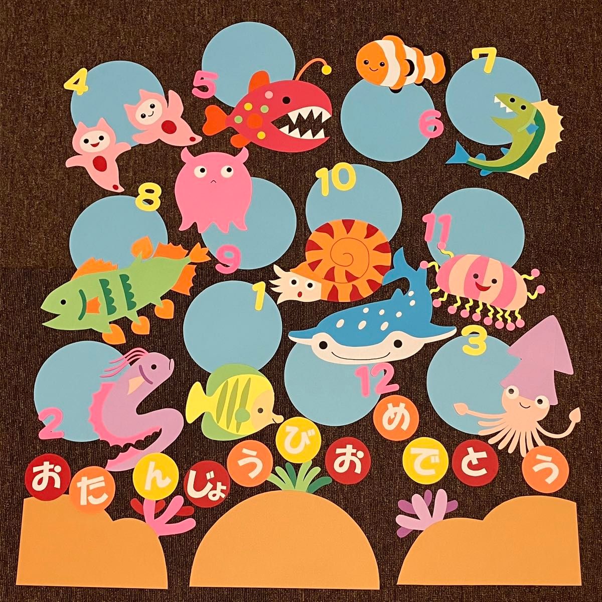 誕生表 誕生日 かわいい 壁面 飾り 保育園 幼稚園 手作り ハンドメイド 新年度 海 魚 生き物。