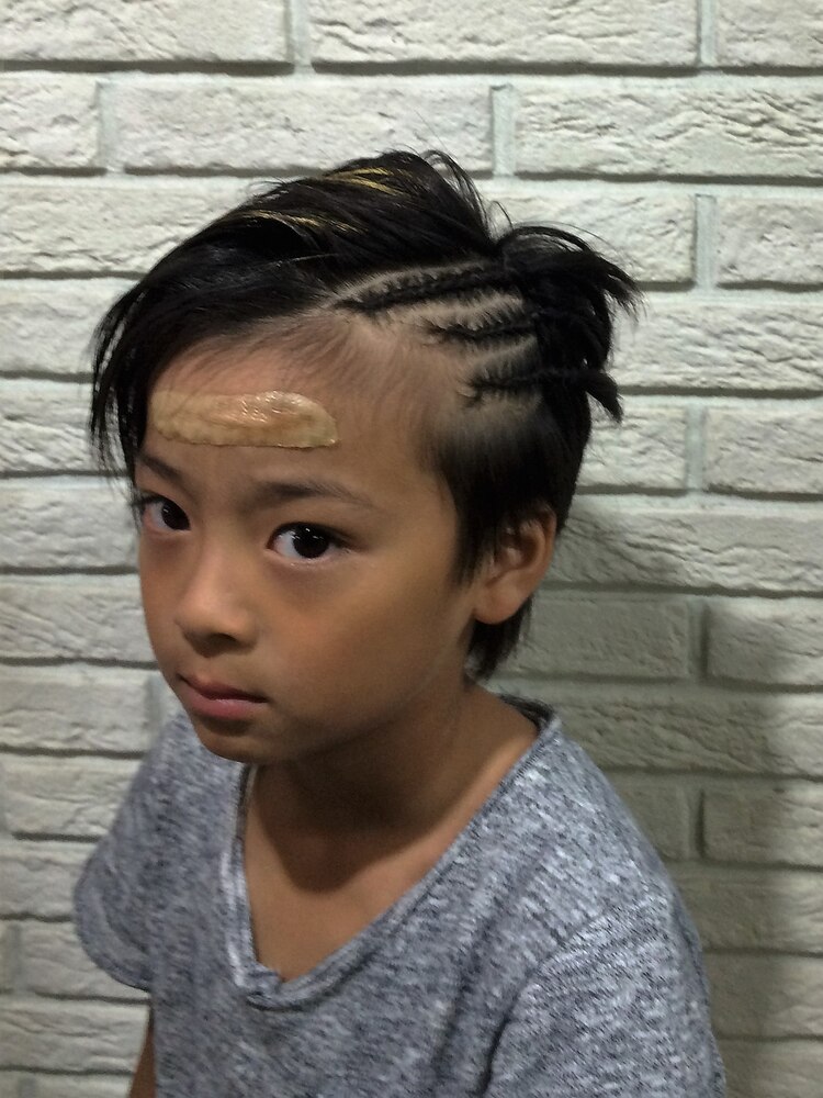 岐阜県 大垣市 キッズカット 子供カット 子どもカット 夏休み 夏休み限定 幼児カット ツーブロック アシメ スキン スキンフェード ウルフシェービング 美容室 理容室 美容師 理容師 シェービング エステ 眉毛 眉 メイク ダンス 小学高に行っていると、なかなか奇抜なヘア。