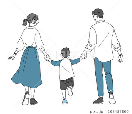 手をつないで歩く親子 家族の後ろ姿 イラスト素材7282741- フォトライブラリ。