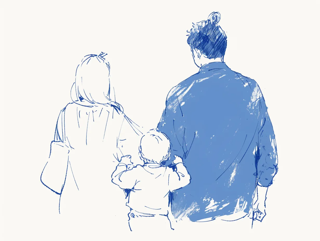 親子で手をつなぐ、あたたかな家族の時間イラスト・フリー素材なら「シンテリ」。