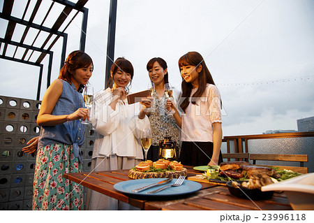 パーティー 女子会 オープンテラス レストラン 友達 スマートフォン スマホ 友人 夕方 夜の写真素材23996118- PIXTA。