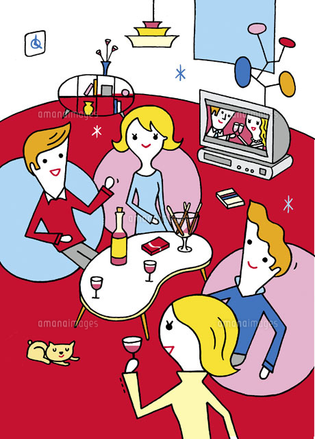 友達とホームパーティーをする男性のフリーイラストフリーイラスト・クラシック フリクラ。