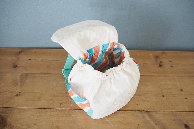 ベビーリュックの作り方 ふた付き、巾着タイプ 裏地付き赤ちゃん用リュック。