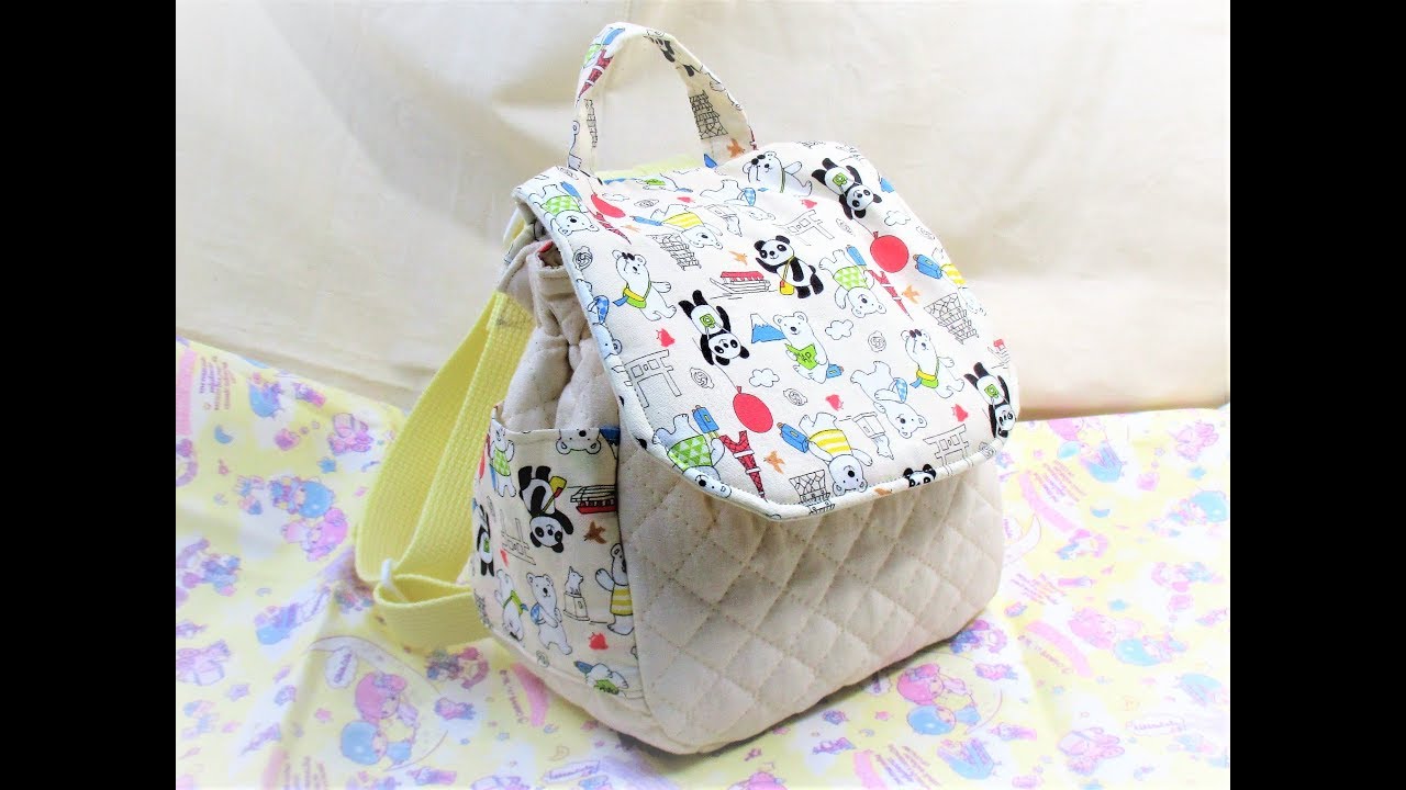 キルティング生地 子ども用リュックの作り方裏地なしで軽い通園バッグ - YouTube。