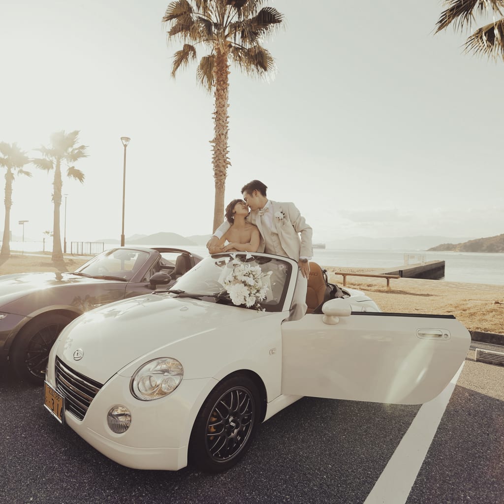 愛車と一緒に海ロケ!!デコルテフォトグラフィー前撮り・フォトウェディング。