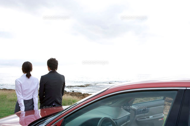 車の横で海を見るカップル 10161001969 の写真・イラスト素材アマナイメージズ。