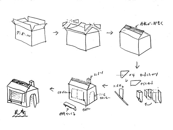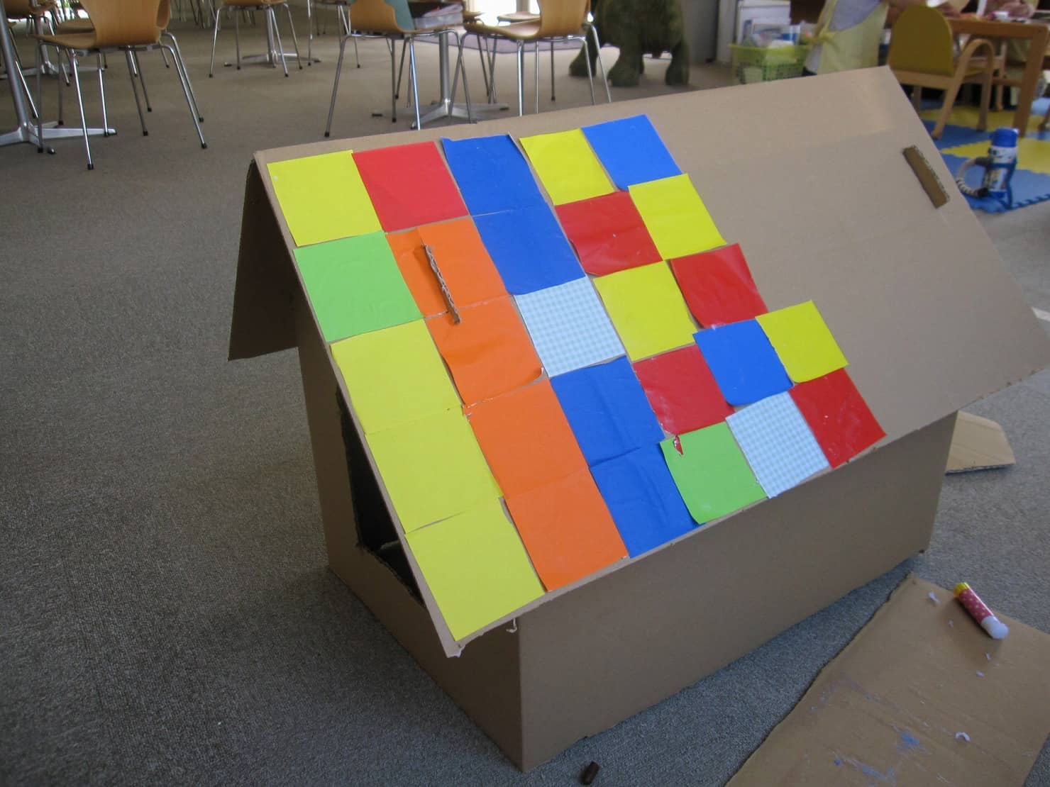 ダンボールで作る「お菓子のお家」ダンボールハウス手作りおもちゃ 作り方にじいろランド note園。