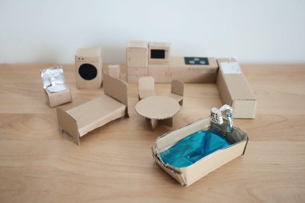 ごっこ遊びが楽しくなる♪ダンボールでドールハウス&ミニチュア家具家電作りつづる。
