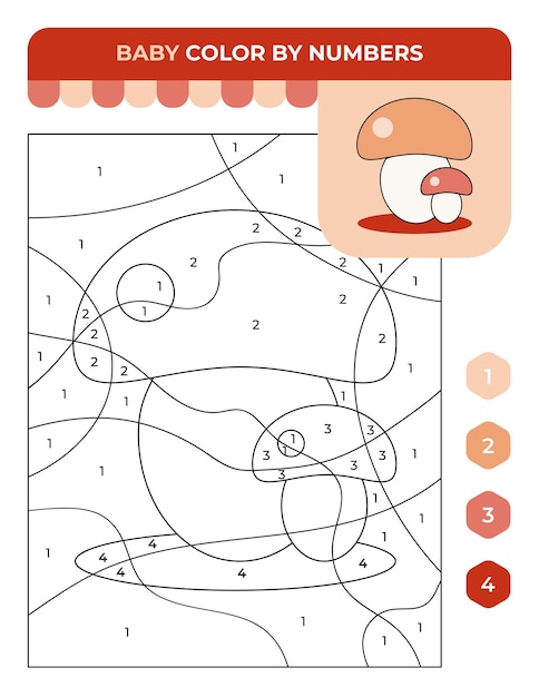 子供のための数字ぬりえゲームきのこの秋の子供向けゲームPremiumベクトル素材。