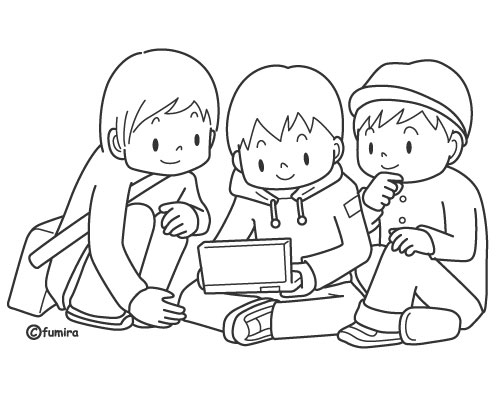 ゲームで遊ぶこどもたちのイラスト ぬりえ。