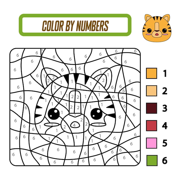 虎の塗り絵子供向けぬりえ未就学児向け知育ゲーム ワークシートPremiumベクトル素材。