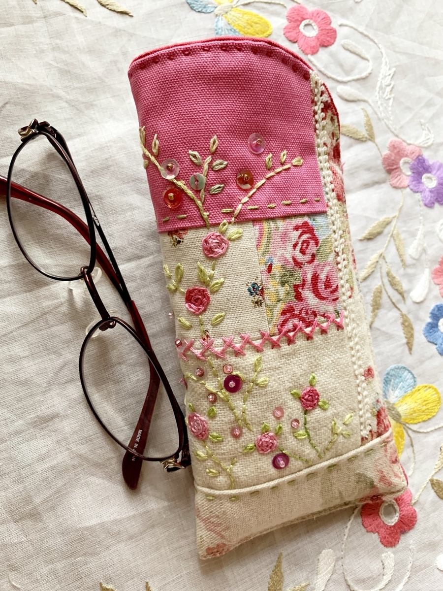 クレイジーキルトに刺繍 メガネケース作りました - 日がな一日 手仕事。