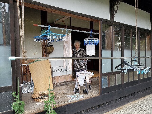 縁側に洗濯物を干す婆さん 母九代目七右衛門の徒然日記。
