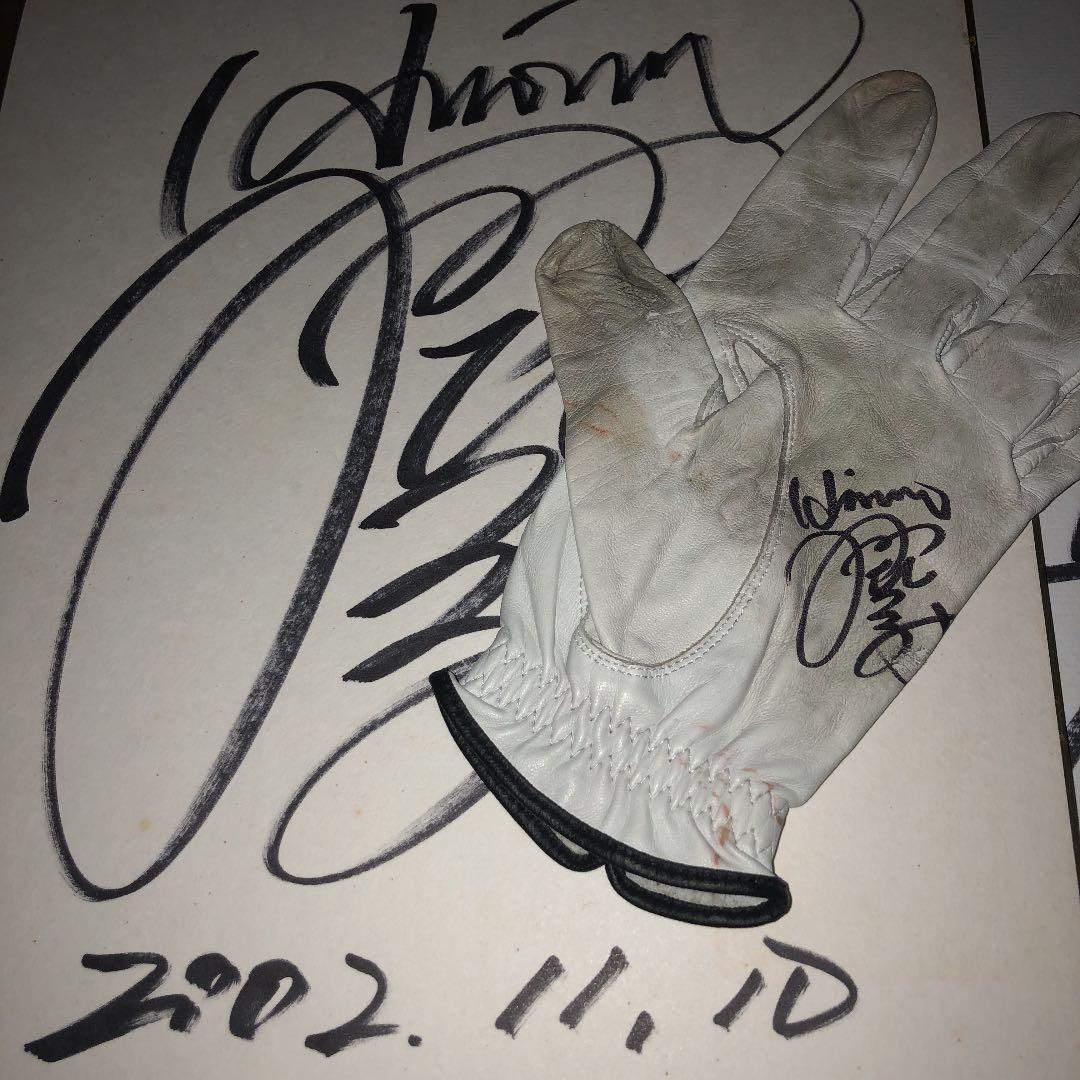 LPGA会長小林浩美さんの直筆サイン色紙、トーナメント実使用サイン入りグローブ。