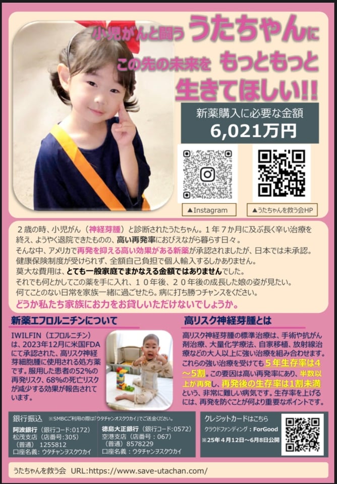 こはるちゃんを救う会🤝 拡散希望町内の方から、依頼があり、掲載しています❇ 「神経芽腫と闘うこはるちゃんの海外での治療実現にご支援ください」命をつなぐため、イタリアのバンビーノ・ジェス小児病院での、CAR-T療法の実施を目指しています。 西播磨にお住まい。