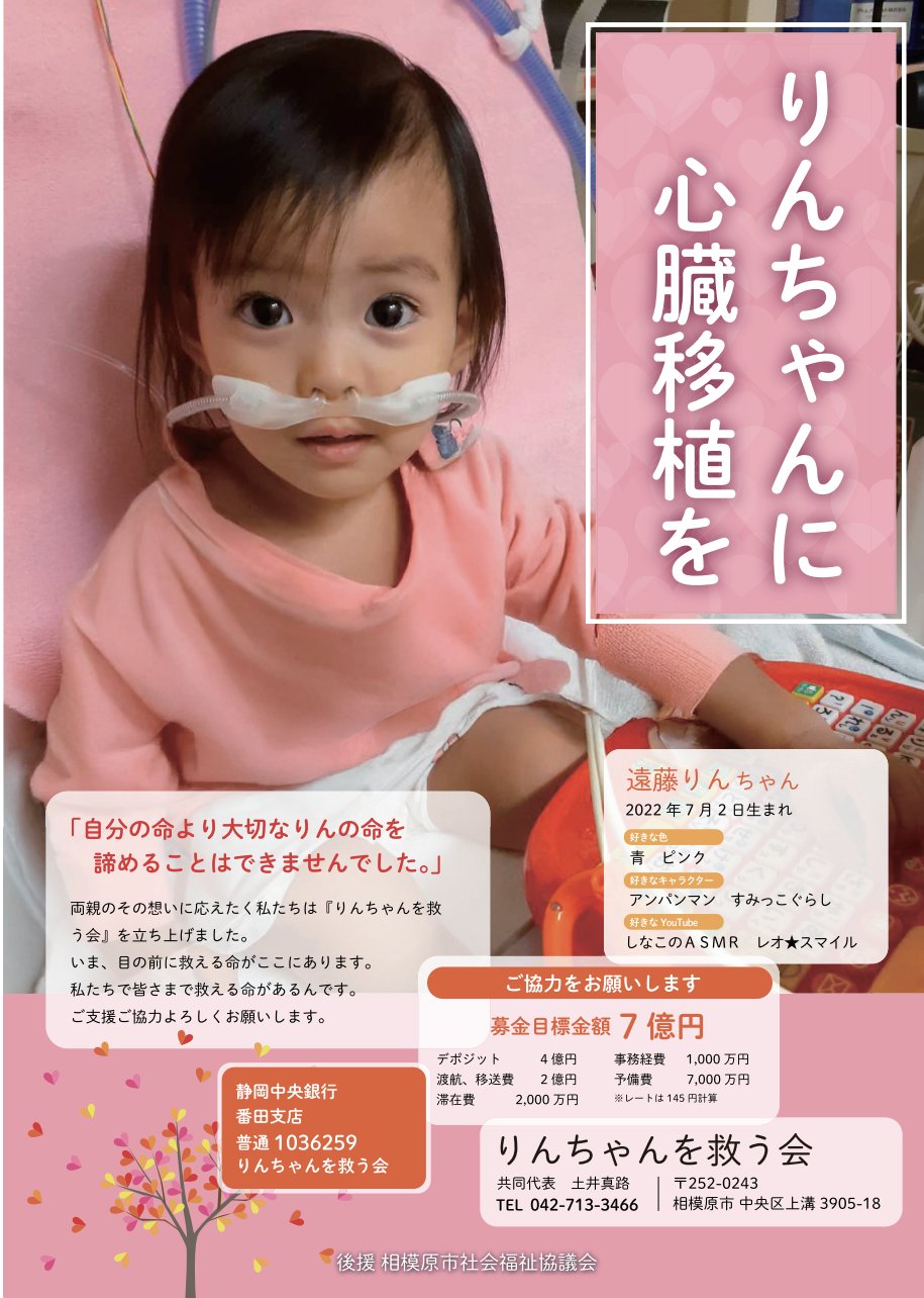 川崎の女児に心臓移植を 募金呼びかけ「命諦められない」カナロコ by 神奈川新聞。