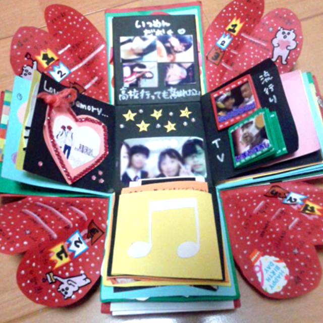 寄せ書きと写真を使ったサプライズボックスアルバム 手作りアルバムアルバムキッチン。