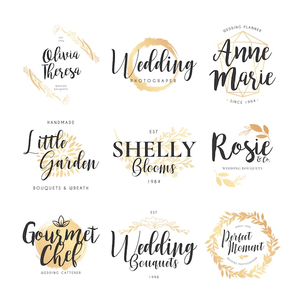 手描きの結婚式のロゴのコレクション無料ベクトル素材。
