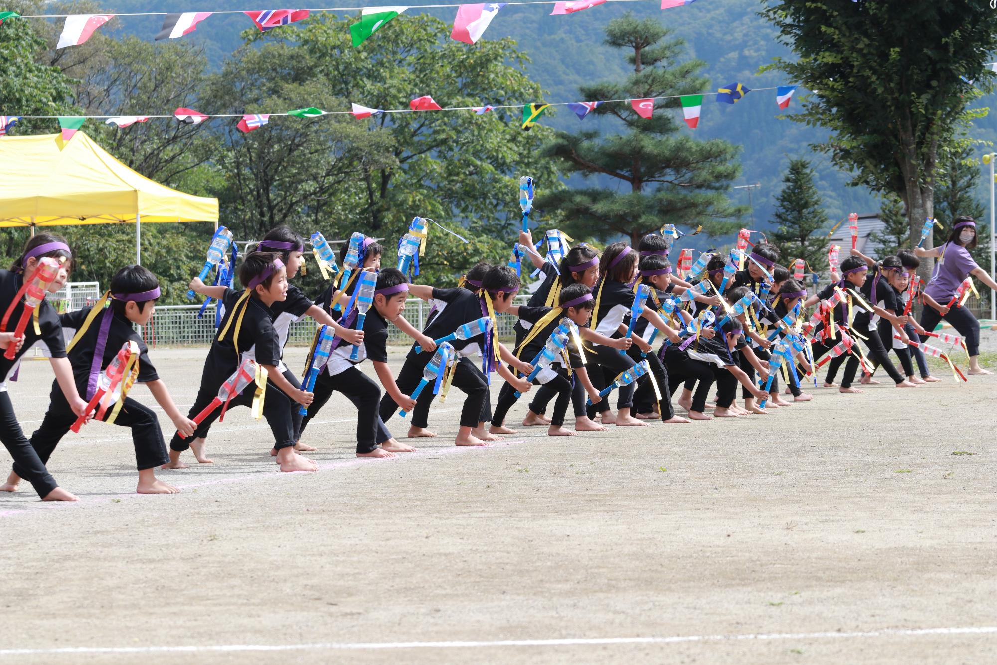 幼稚園・保育園の運動会 年長・5歳児のための和風ダンス「よさこい風ダンス炎」うちわをもって踊るカッコいい振付とフォーメーションが大人気!こども達の成長が手に取るようにわかるダンスが保護者にも大好評。