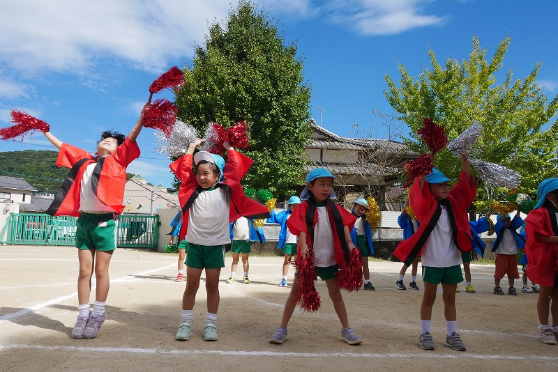 運動会 オープニング年中フラッグ年長 ダンスてまりこども園 福山 福山市 こども園 保育園 保育所 保育 保育施設 保育士 保育教諭 幼稚園 こども 乳児 乳幼児 幼児。