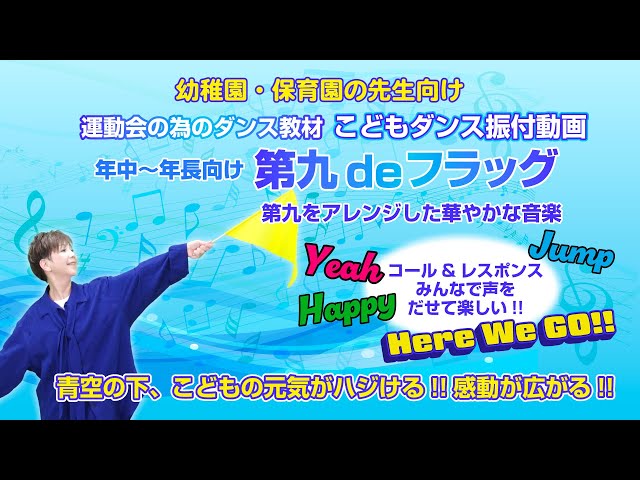 幼稚園・保育園の運動会 年中〜年長 5歳児むけのダンス第九をアレンジした華やかな音楽で踊る「第九deフラッグ」コール&レスポンスで元気に声もだせて盛り上がります! - YouTube。
