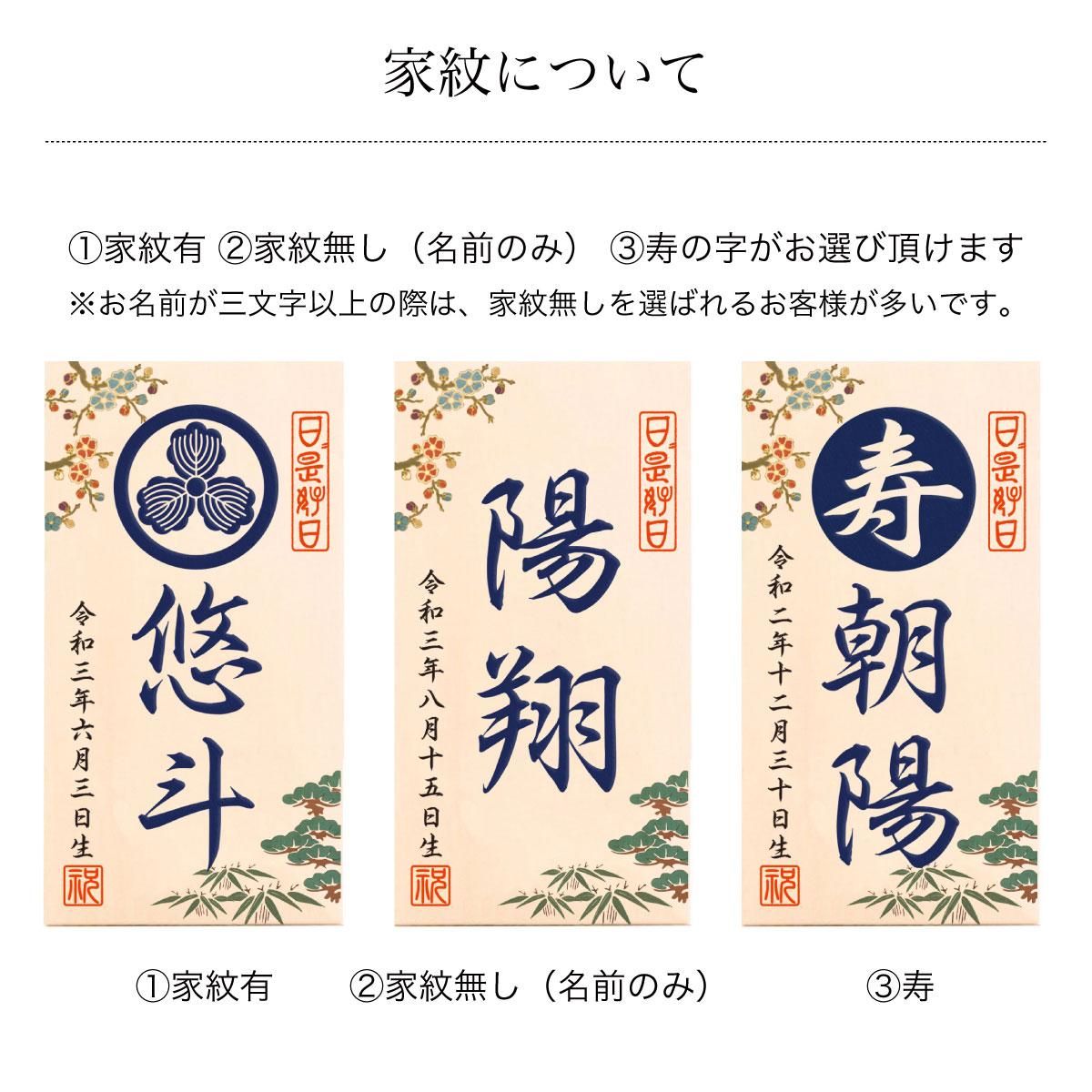 種類24:小 名前入り生年月日入り 家紋入り 黄金飾り房付き 名前入り掛軸 本格表装花扇 htg002代引き不可オルゴール付 名前 生年月日 家紋入り木札C 松竹梅五月人形 男の子 名前札。