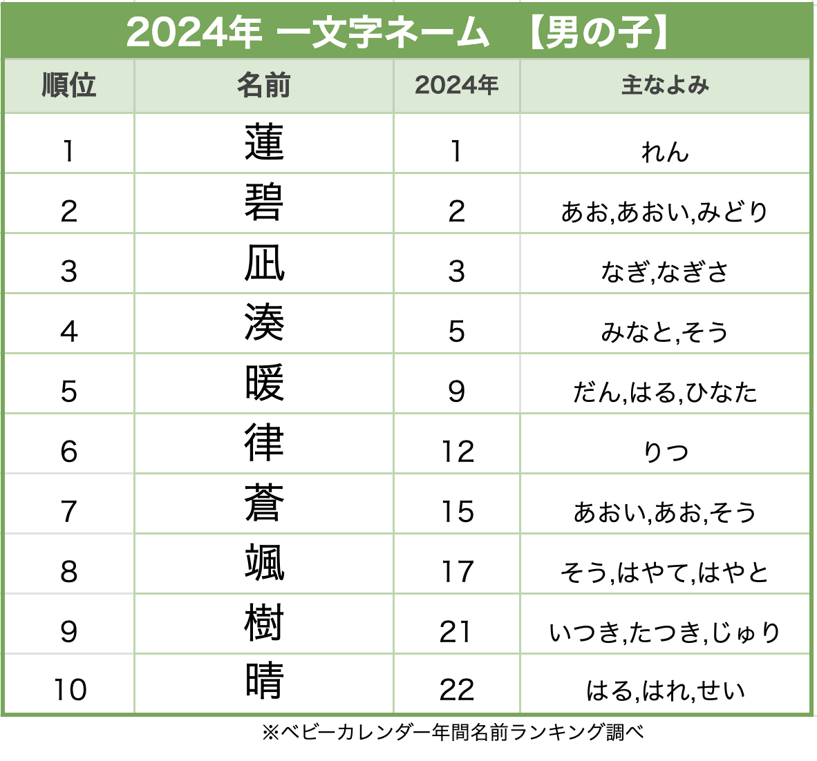 令和のトレンドはシンプルさ重視!?漢字1文字の名前はスマートな印象に 一文字ネー ベビーカレンダ。