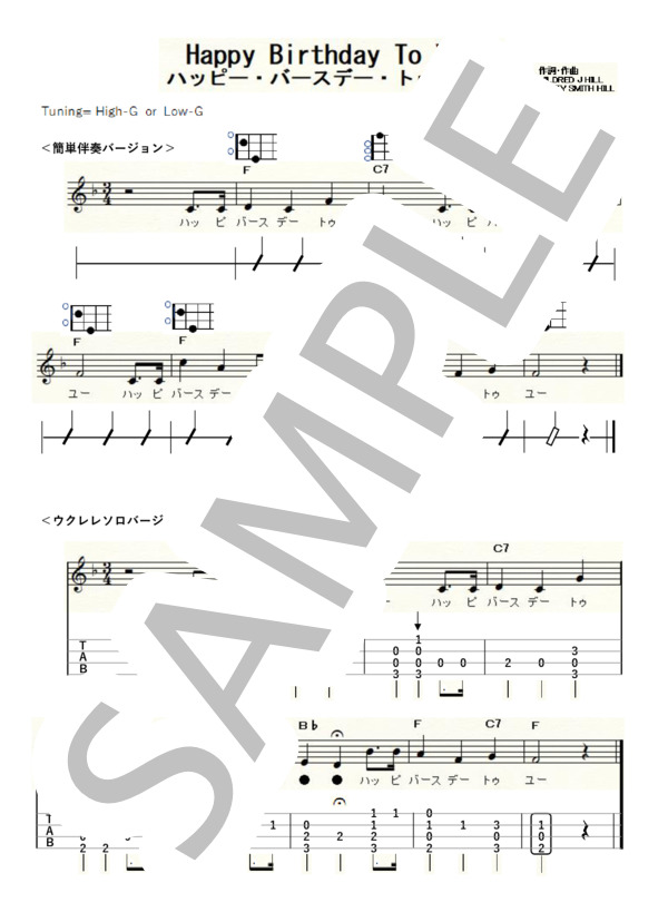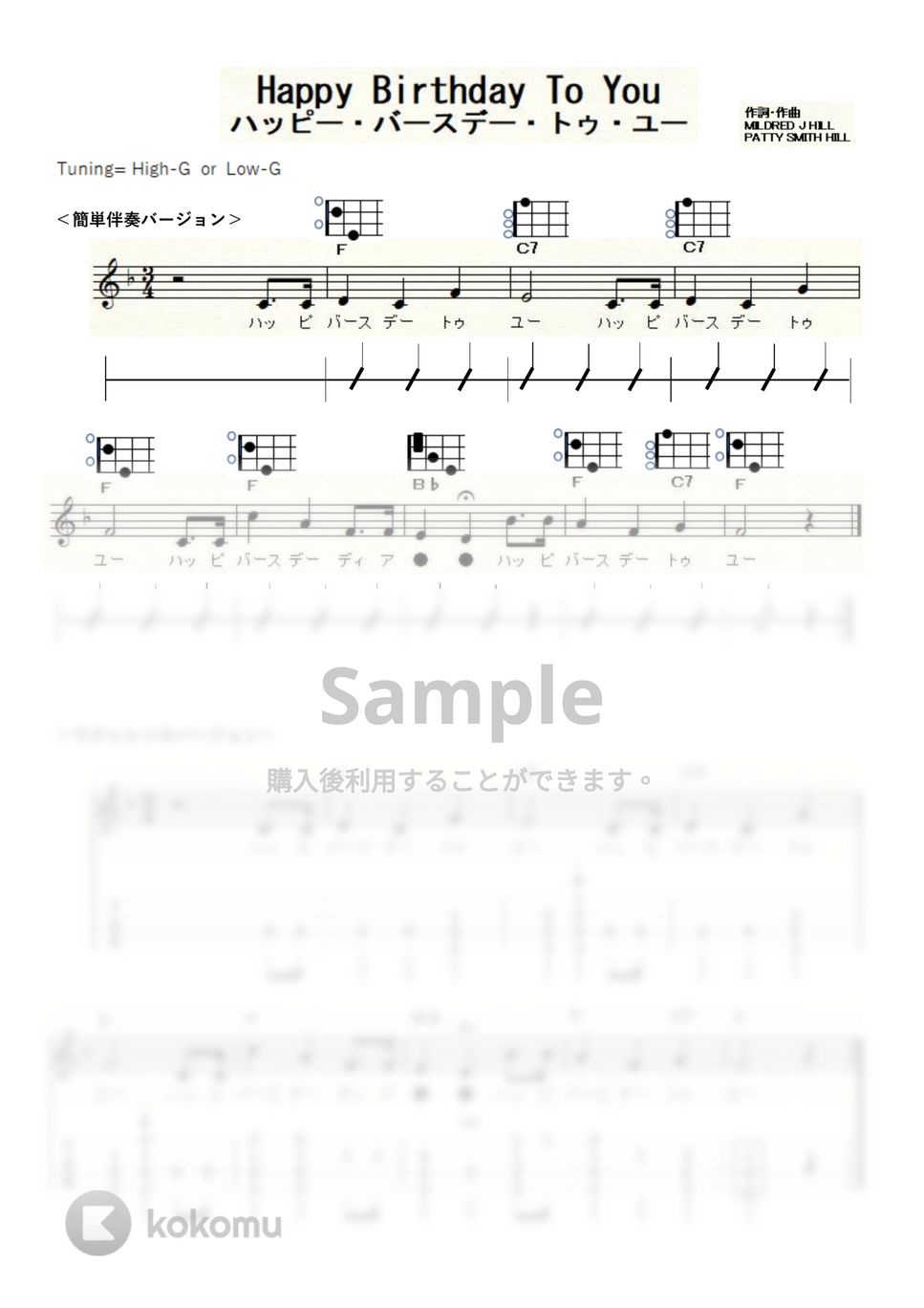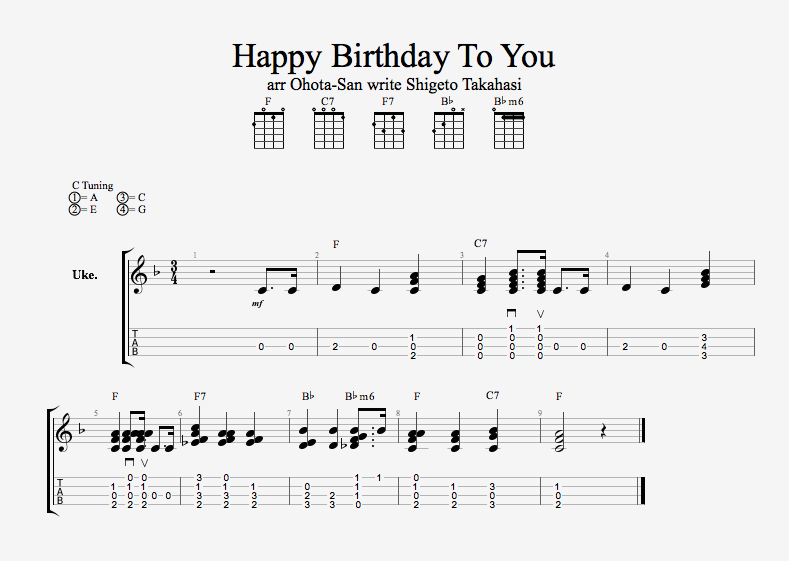 Happy Birthday To Youソロウクレレの無料楽譜・タブ譜。