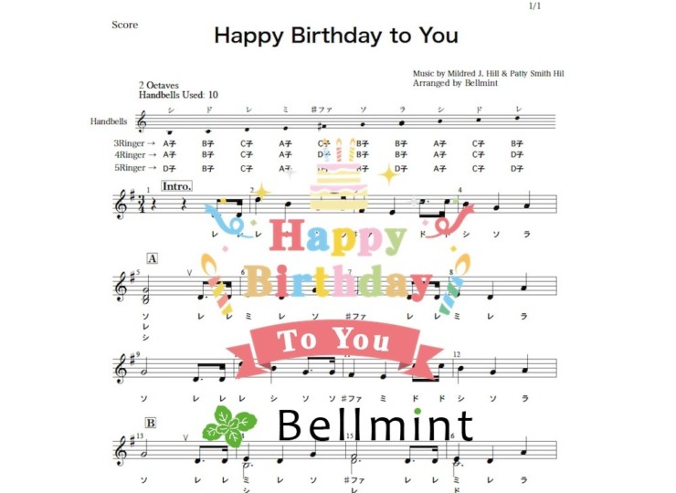 ハンドベル楽譜ハッピーバースデーハンドベルのベルミント。