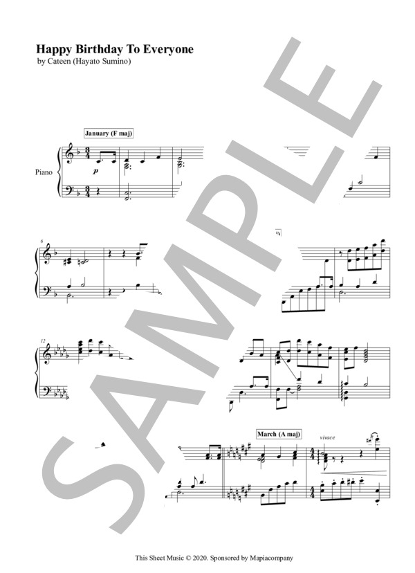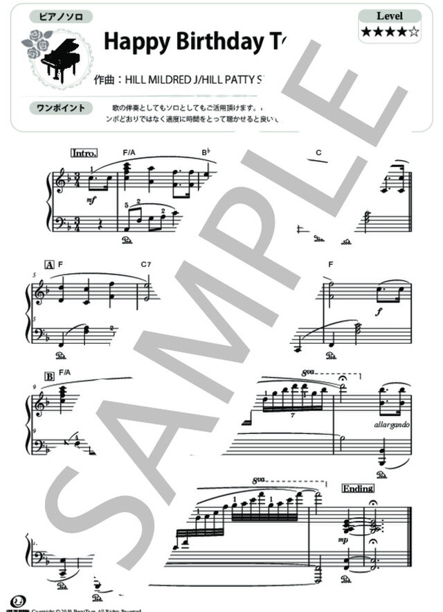 楽譜 Happy Birthday To Everyoneミルドレッド・J・ヒル&パティ・S・ヒルピアノソロ上級-Piascore 楽譜ストア。
