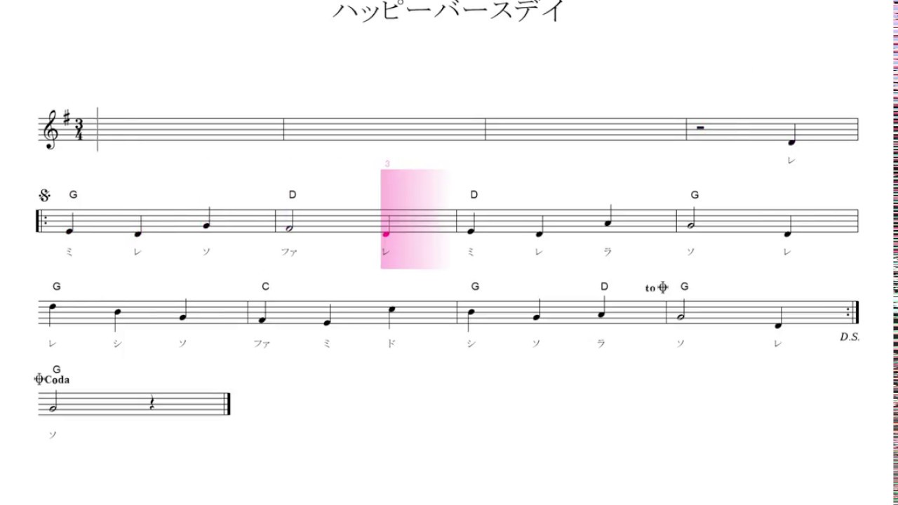 ハッピーバースデー ドレミで歌う楽譜 コード付き- YouTube。