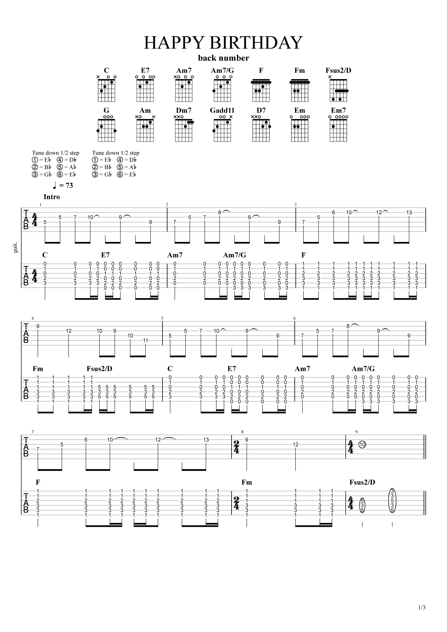 TAB譜 無料 HAPPY BIRTHDAY back number ギターワンコーラスMUZYXオンライン。
