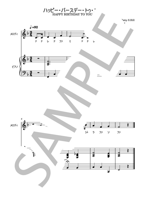 楽譜 ハッピーバースデー・トゥー・ユー ピアノ弾き歌い対応歌詞付き伴奏譜 左手単音・ドレミ付き 令和7年度 保育士試験曲対応譜ミルドレッド・J・ヒル&パティ・S・ヒルピアノ弾き語り入門- Piascore 楽譜ストア。