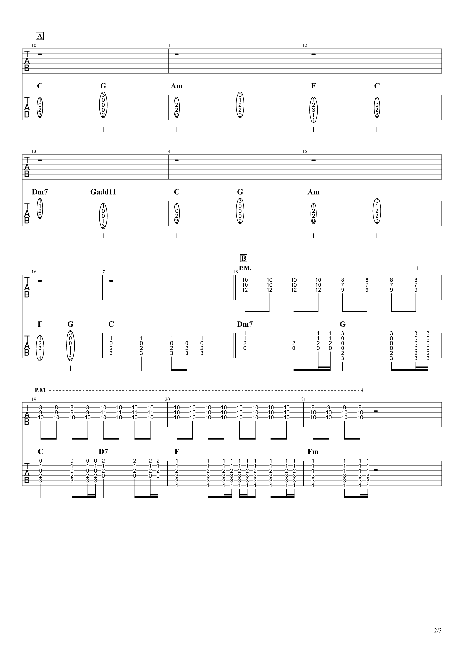 Happy Birthday to Youソロギターの無料楽譜・タブ譜。