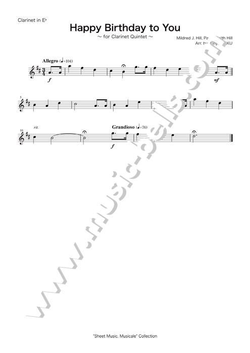 Happy Birthday to You」スタンダードVer. クラリネット五重奏 郭 順也編- 楽譜出版社ミュージック・ベルズMusic Bells Publishing。