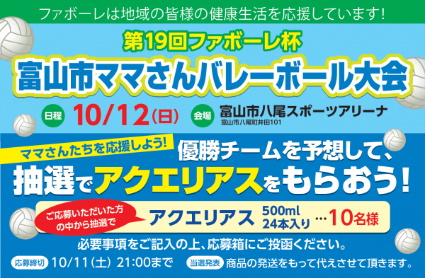 第19回ファボーレ杯 富山市ママさんバレーボール大会 優勝チームを予想しよう!イベント&ニュース。