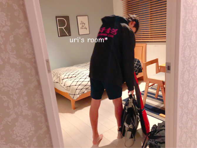 芝生を嫌がる息子😂でもパパがいれば大丈夫✨。