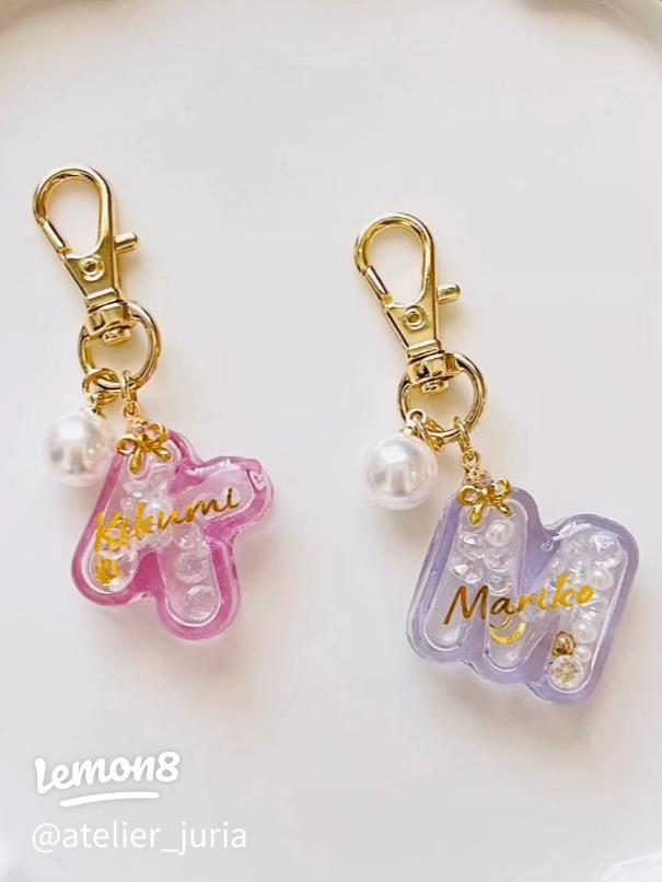 ☆オーダーのみペア お揃い キーホルダー レジン キラキラ 手作りペアキーホルダー: イニシャルキーホルダー作り方。