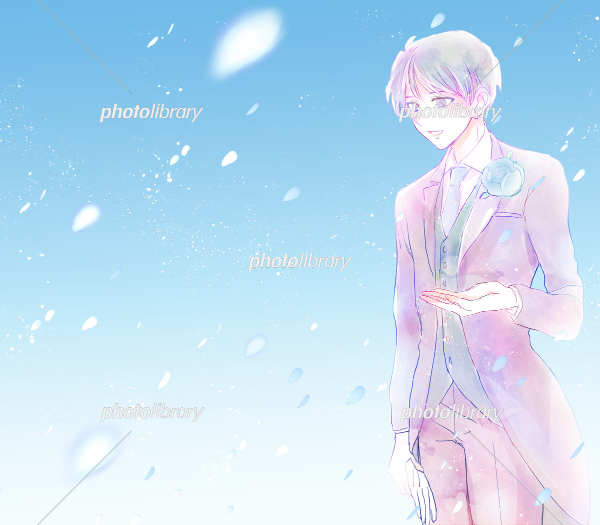 結婚式の新郎 青系 花吹雪 イラスト素材7076758- フォトライブラリ。