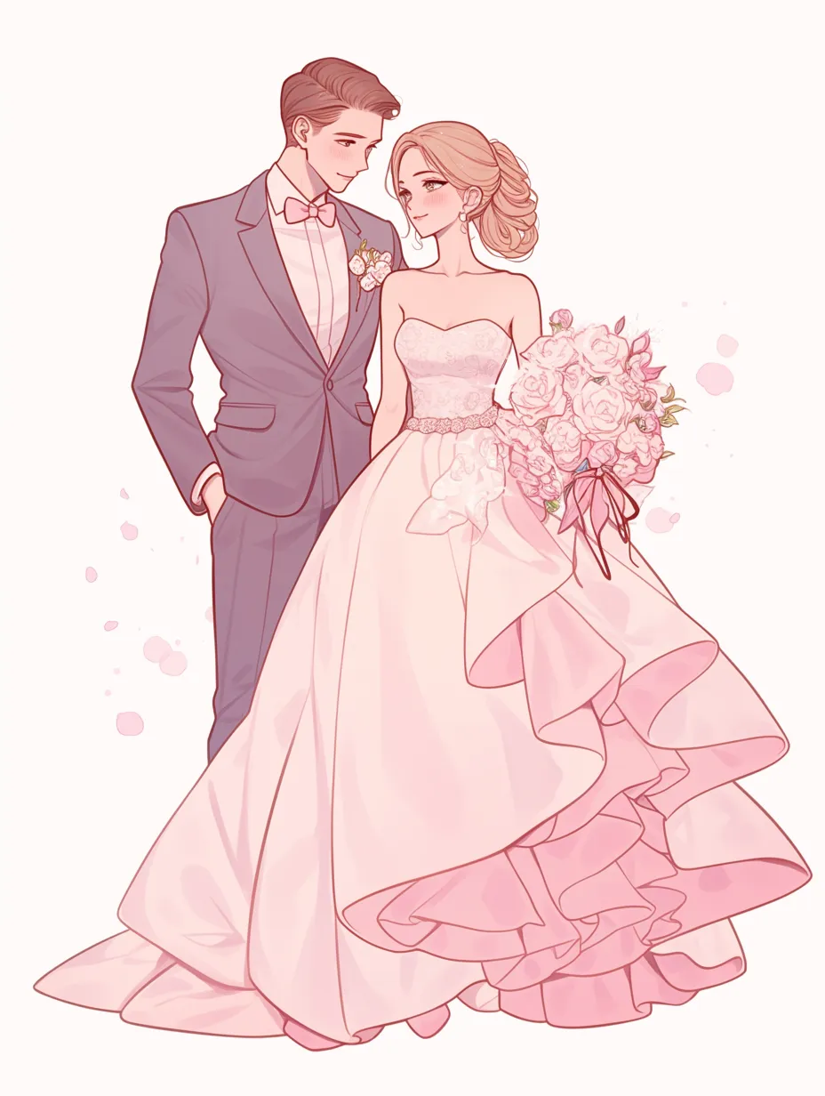 優雅な瞬間を共有する新郎新婦イラスト・フリー素材なら「シンテリ」。