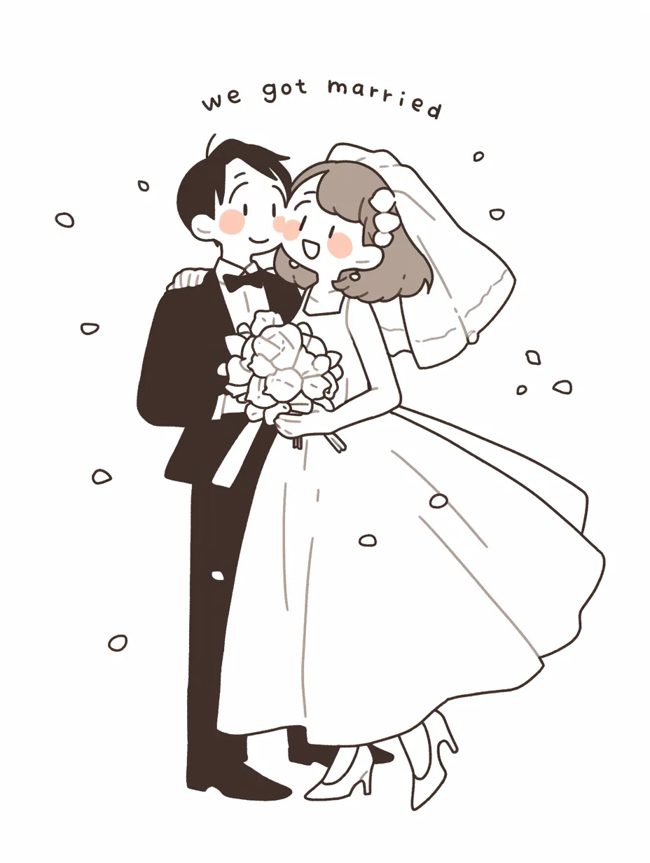 結婚報告のテンプレート「新郎新婦」かわいいフリー素材集 いらすとや。