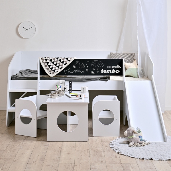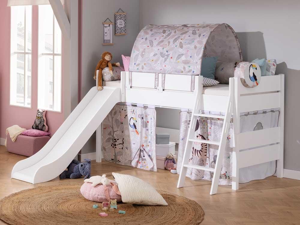 ドイツTIAGOの滑り台付きミニロフトベッド120はかわいい白のミドルベッドです。 Angel's Share。