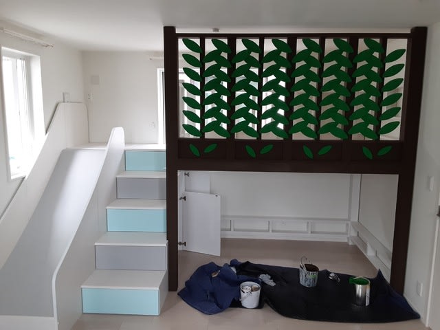 DIY ロフトベッドを作るすべり台付きアスレチック。