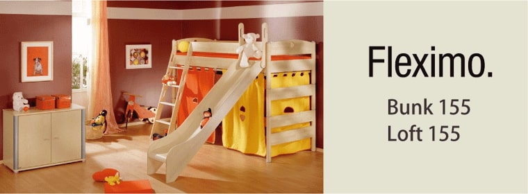ロフトベッドドイツPAIDIの滑り台付きベッド。