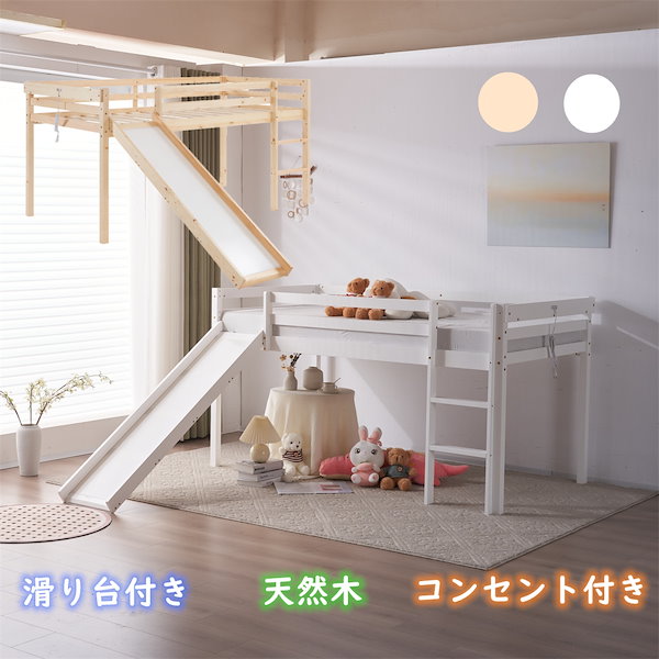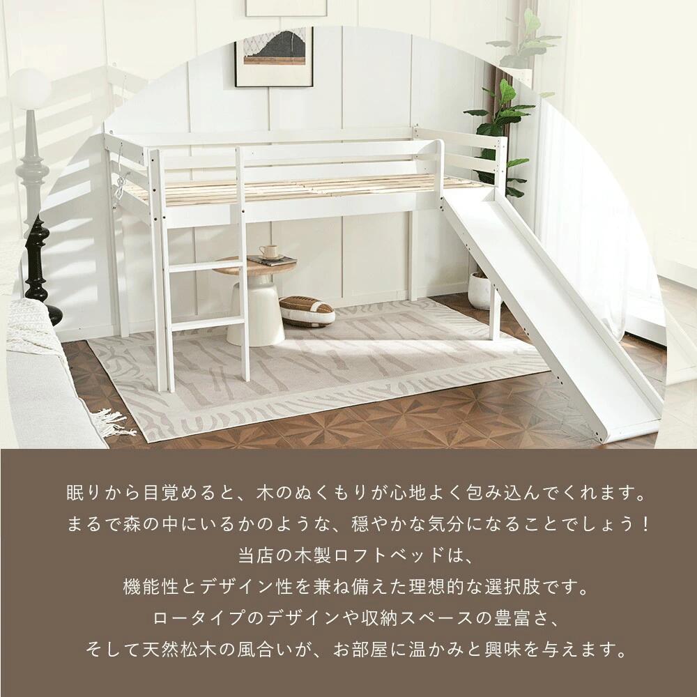 予約販売 ロフトベッド50 頑丈 ロータイプ 滑り台付き 階段付き 天然木 コンセント付き シングル 宮付き 収納棚付き 収納 北欧風 大人一人暮らし 子供ベッド ベッド 木製 ロフトベッド ナチュラル ホワイト 耐荷重350kg!天然木の頑丈ロフトベッド激安インテリア家具。
