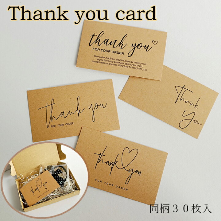 Thank you カード 30枚 クラフト紙 感謝 プレゼント ハンドメイド お礼状 ラッピング 手書き メッセージ ハンドメイド作家 オーダー品アクセサリー ショップカード プチギフト お返し サンキュー メッセージカード thank youシールハンドメイドパーツ・雑貨Lieben。