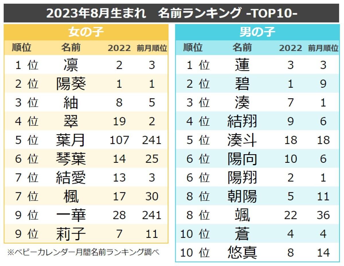 いま人気の赤ちゃんの名前」ランキングTOP10! 男の子の1位は「暖葵」 2022年5月版 無料 赤ちゃん名づけ1 4ライフねとらぼリサーチ。