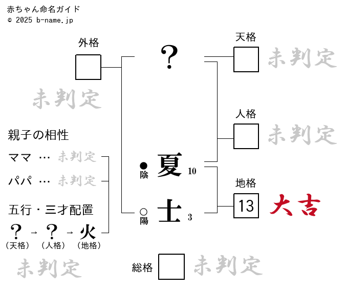 夏士 なつし 」という男の子の名前の姓名判断結果や「なつし」とよむ男の子のその他の名前例や字画数一覧名前を響きや読みから探す赤ちゃん名前 辞典完全無料の子供の名前決め・名付け支援サイト「赤ちゃん命名ガイド」。